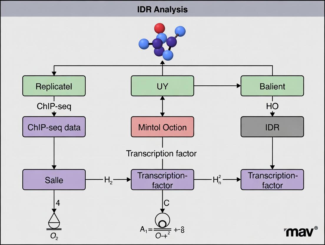 Within a broader thesis on IDR analysis for replicated transcription factor (TF) ChIP-seq research, this document establishes the Irreproducible Discovery Rate (IDR) as a critical statistical framework. IDR quantifies the consistency between replicates in high-throughput experiments, distinguishing biologically reproducible signals from technical noise and irreproducible random peaks. It is the method of choice for the ENCODE and modENCODE consortia for assessing replicate agreement in ChIP-seq, ATAC-seq, and related assays, providing a principled approach to generating a unified, reliable set of findings from replicate experiments.
